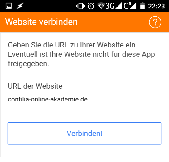 Wenn Sie die App zum ersten Mal starten, werden Sie aufgefordert die "URL der Website" einzugeben.